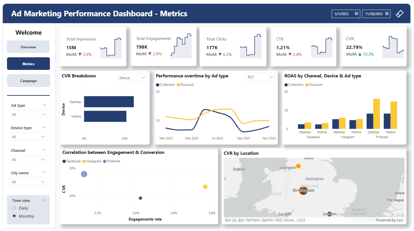 The Marketing Campaign Analytics dataset contains 9,900 records of digital ads run across Facebook, Instagram, and Pinterest in the UK. It includes campaign attributes, devices, geo locations, ad formats, and performance metrics such as impressions, clicks, CTR, conversions, spend, CPC, ROI, and profit. Learners can analyze channel efficiency, device behavior, geo-level performance, seasonal trends, engagement impact, and budget effectiveness. The dataset supports identifying ROI drivers, diagnosing diminishing returns, and generating insights to optimize marketing strategy and allocation.