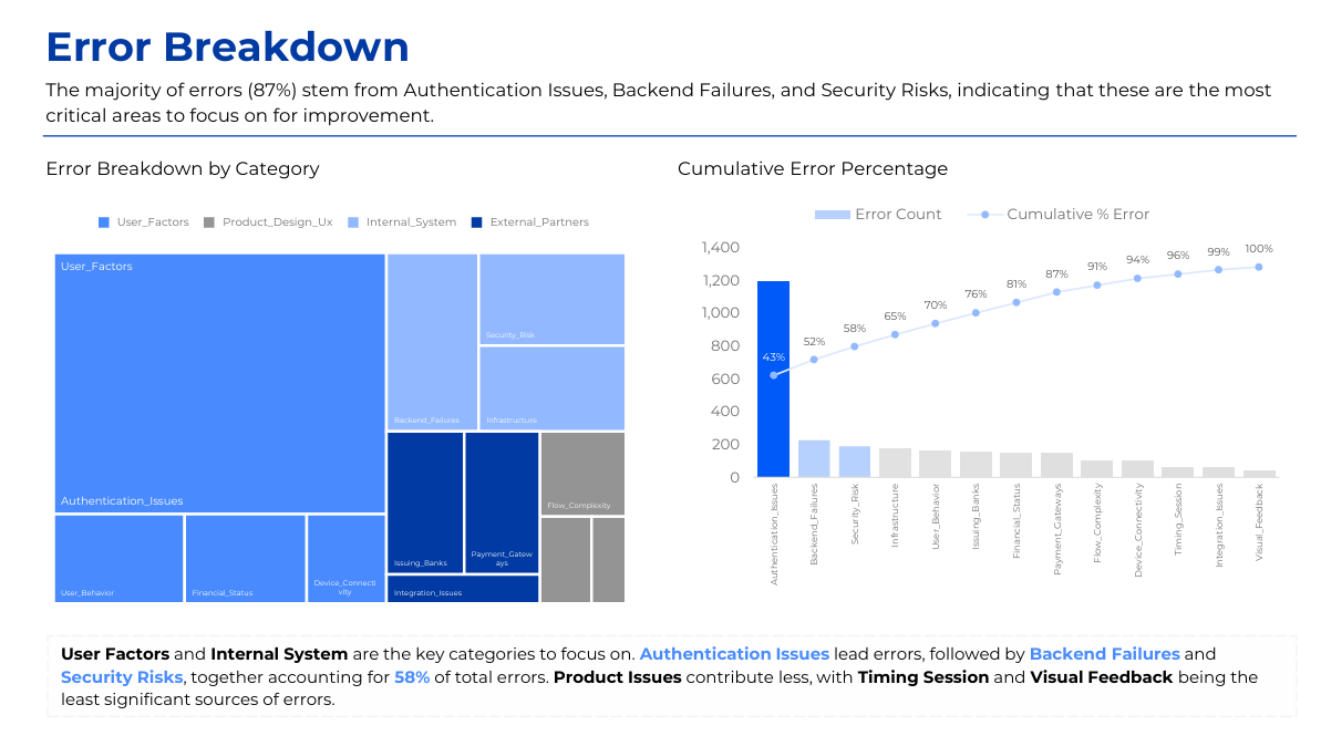 Analyze & visualize payment journey bottlenecks in Power BI using MECE breakdown.