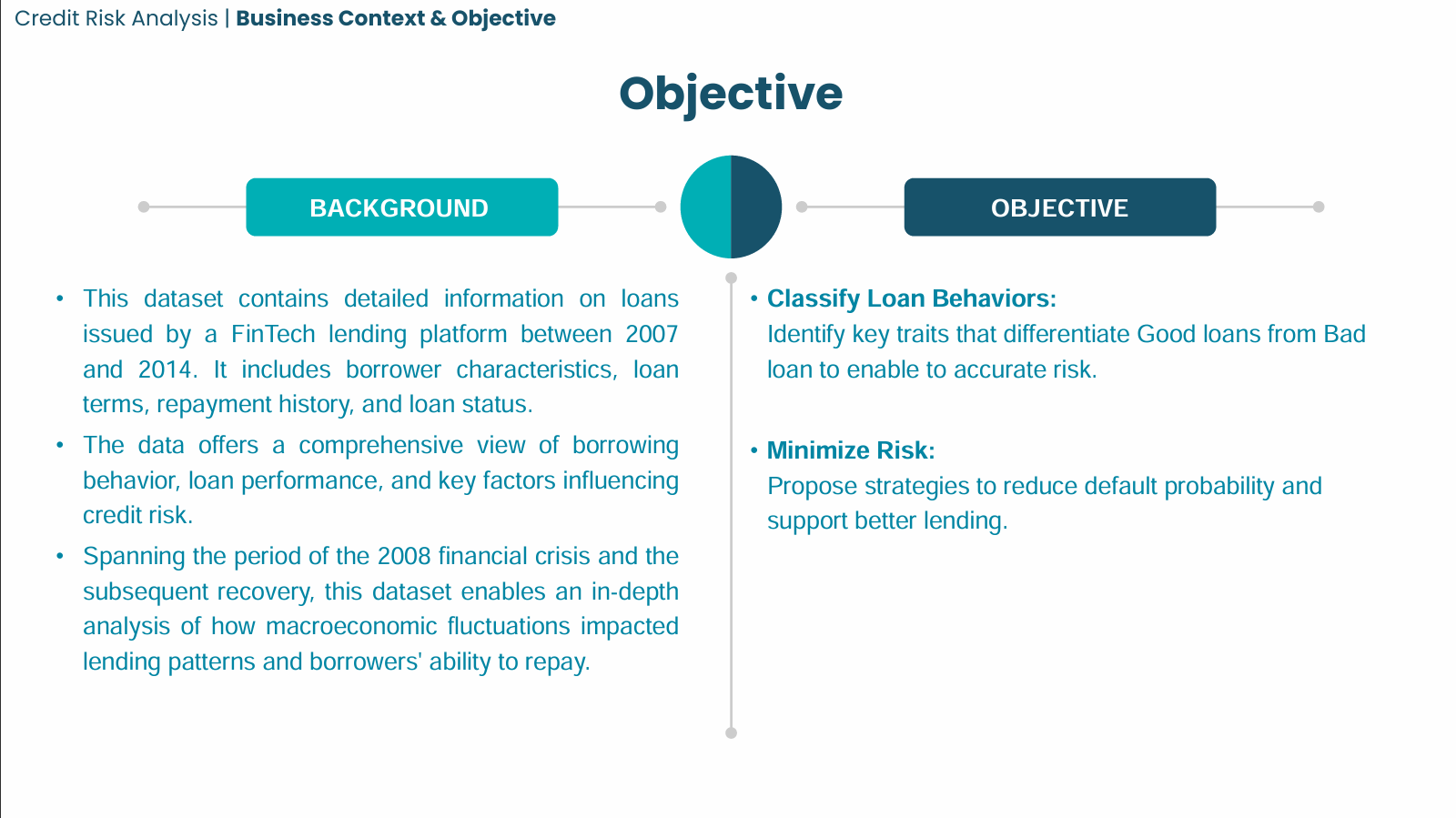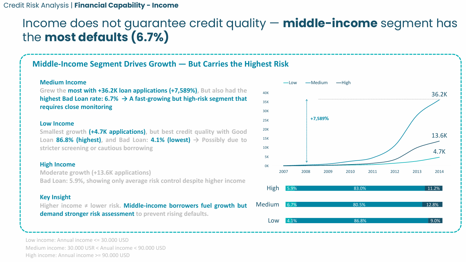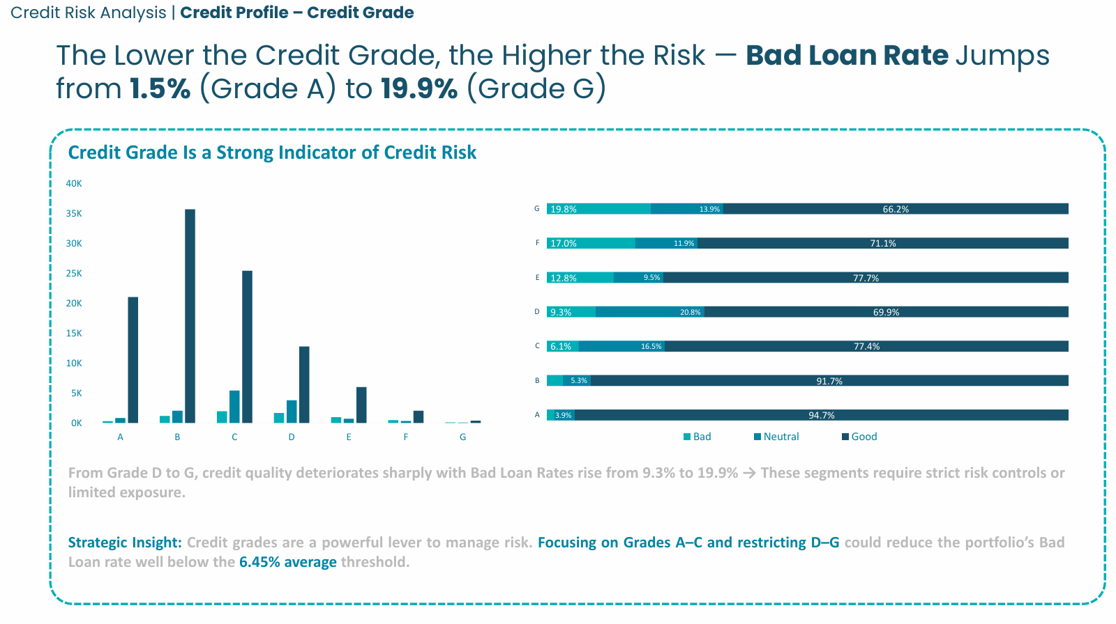 The project focused on analyzing credit risk in a peer-to-peer lending platform using historical loan data from 2007 to 2014. In response to the post-crisis surge in loan applications, using Power BI explores loan records and identifies behavioral patterns that distinguish good loans from bad ones based on credit profile, debt management pattern, financial capability and loan structure. The goal was to provide data-driven insights and recommendations to help reduce default risk and improve lending strategies through better borrower segmentation and risk monitoring.