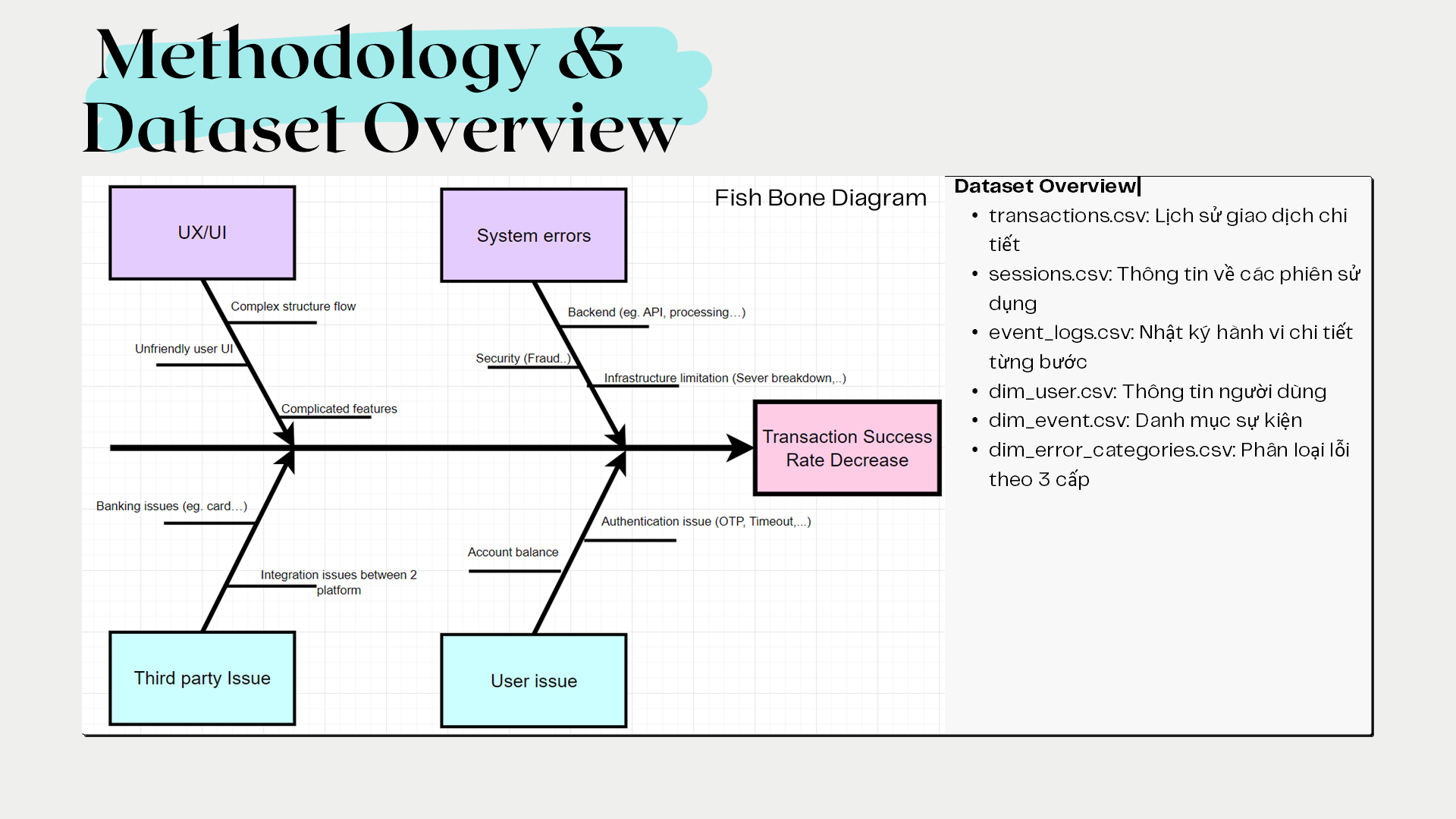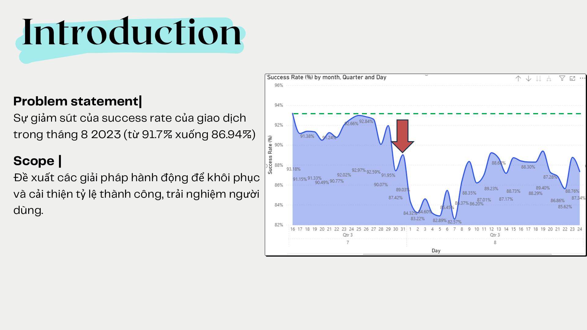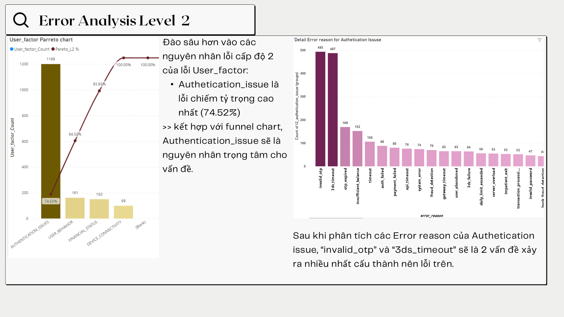 The project analyzes the decline in bill payment success rate on an e-wallet app since August 2025 using transactional, session, event log, and error data. Power BI and the MECE framework were applied to identify failure points across the payment journey, including authentication, gateway redirects, and app version issues. Key insights highlighted correlations between failure rates and user segments, device types, and network quality. The analysis led to actionable recommendations to optimize payment flows and reduce error impact.