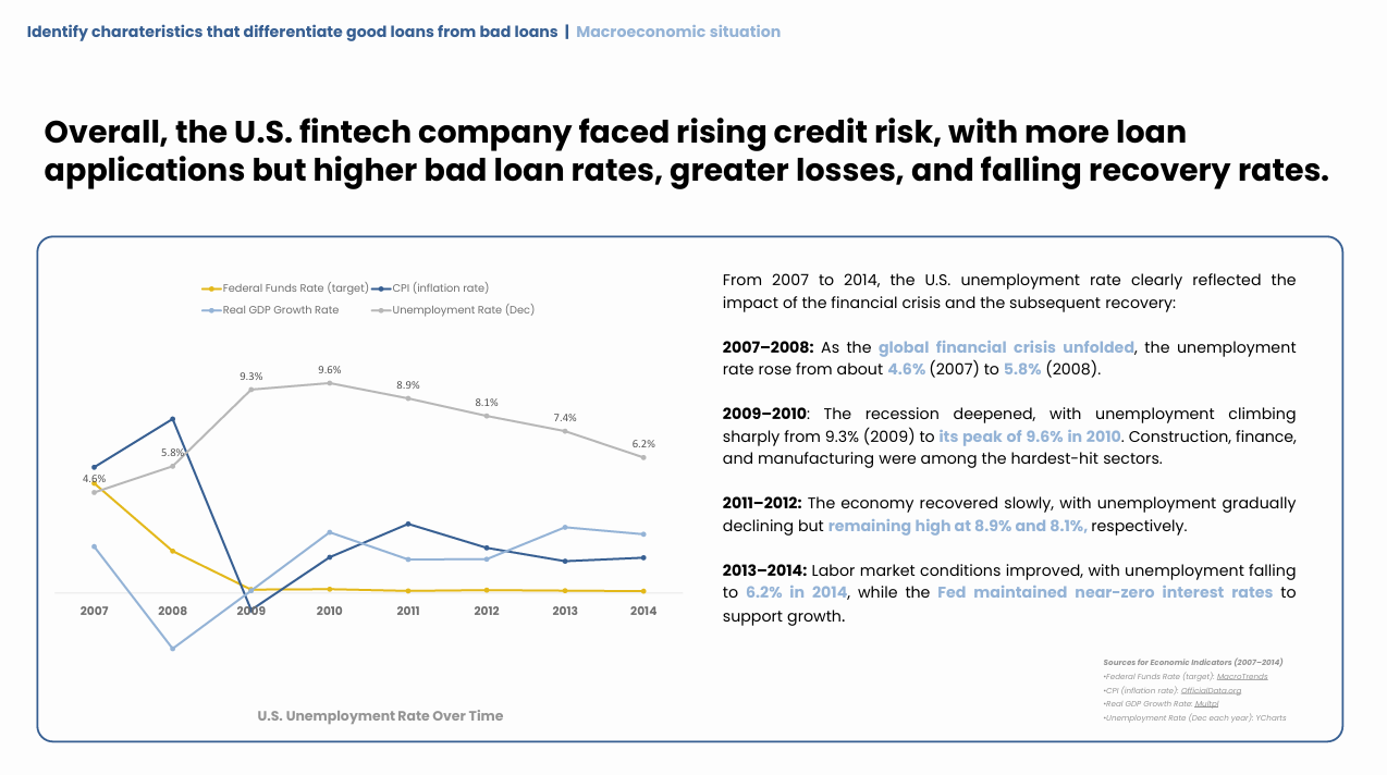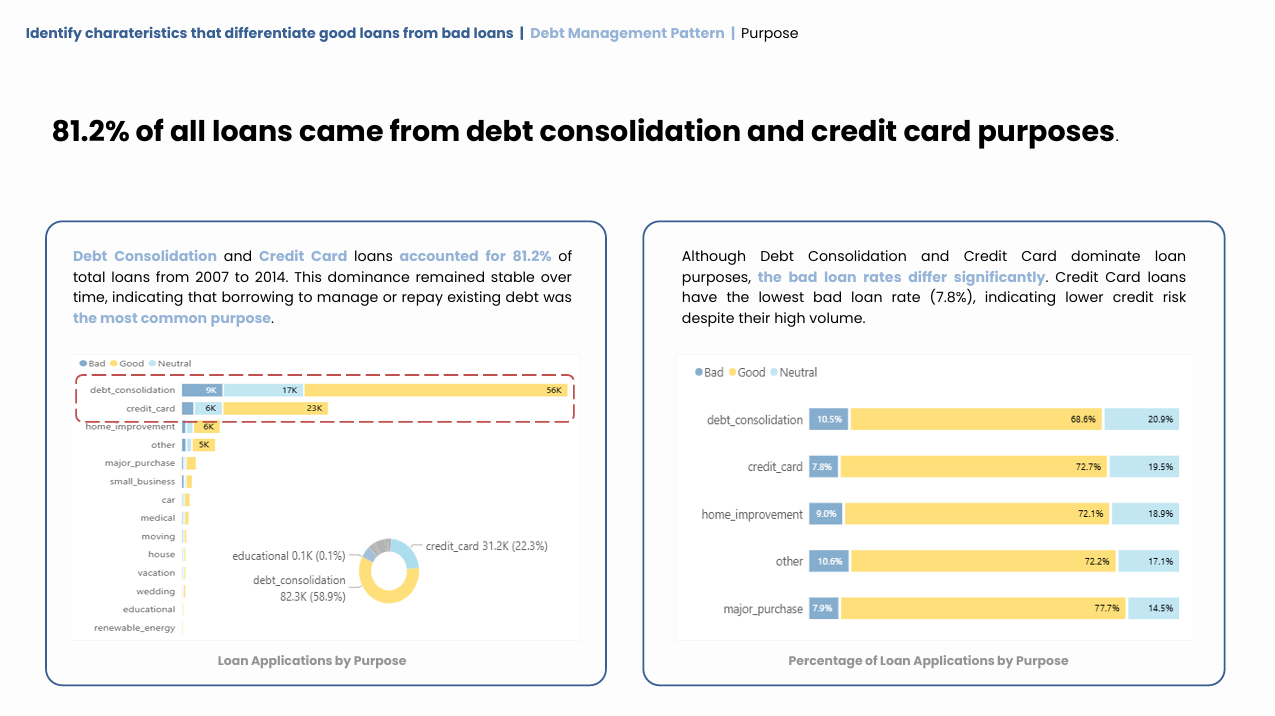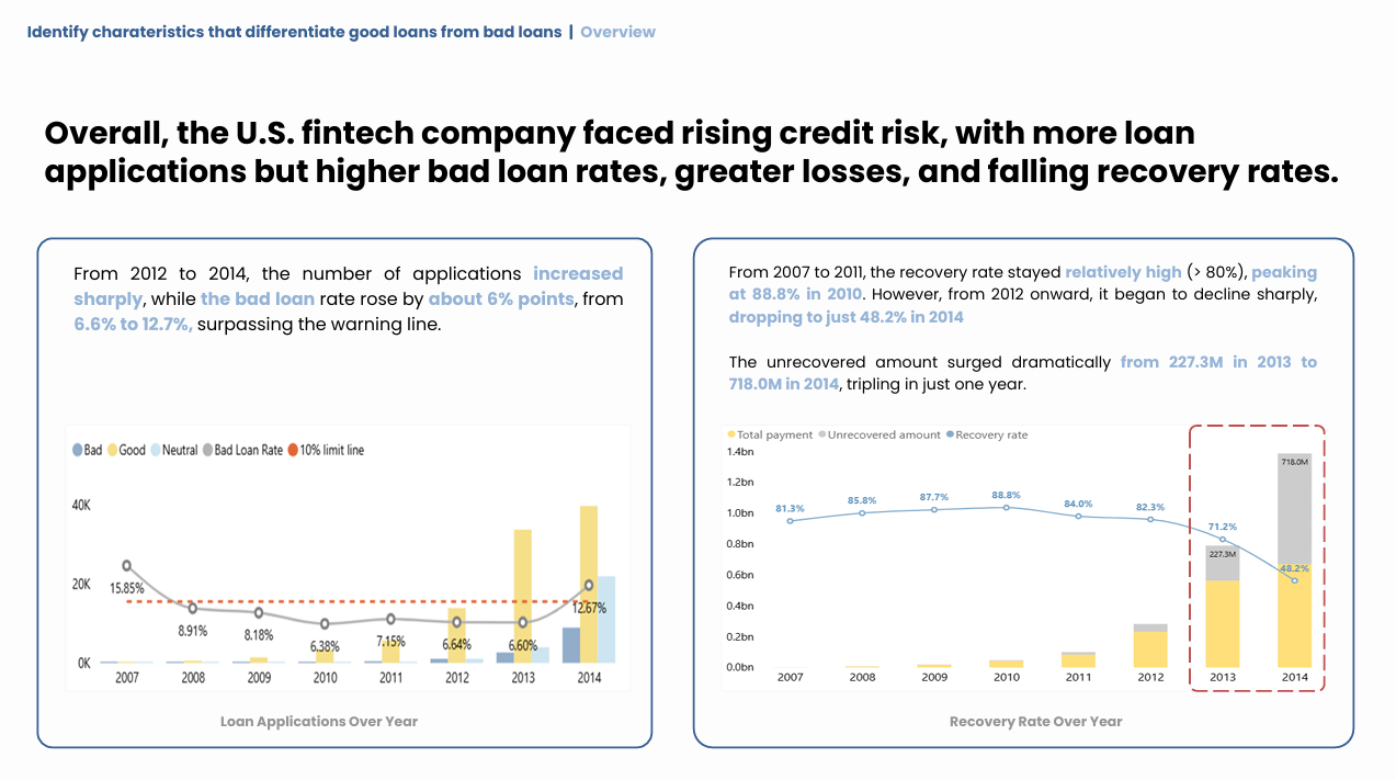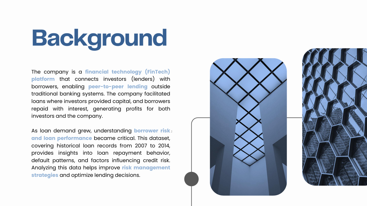 The project focused on analyzing credit risk in a peer-to-peer lending platform using historical loan data from 2007 to 2014. In response to the post-crisis surge in loan applications, using Power BI explores loan records and identifies behavioral patterns that distinguish good loans from bad ones based on credit profile, debt management pattern, financial capability and loan structure. The goal was to provide data-driven insights and recommendations to help reduce default risk and improve lending strategies through better borrower segmentation and risk monitoring.