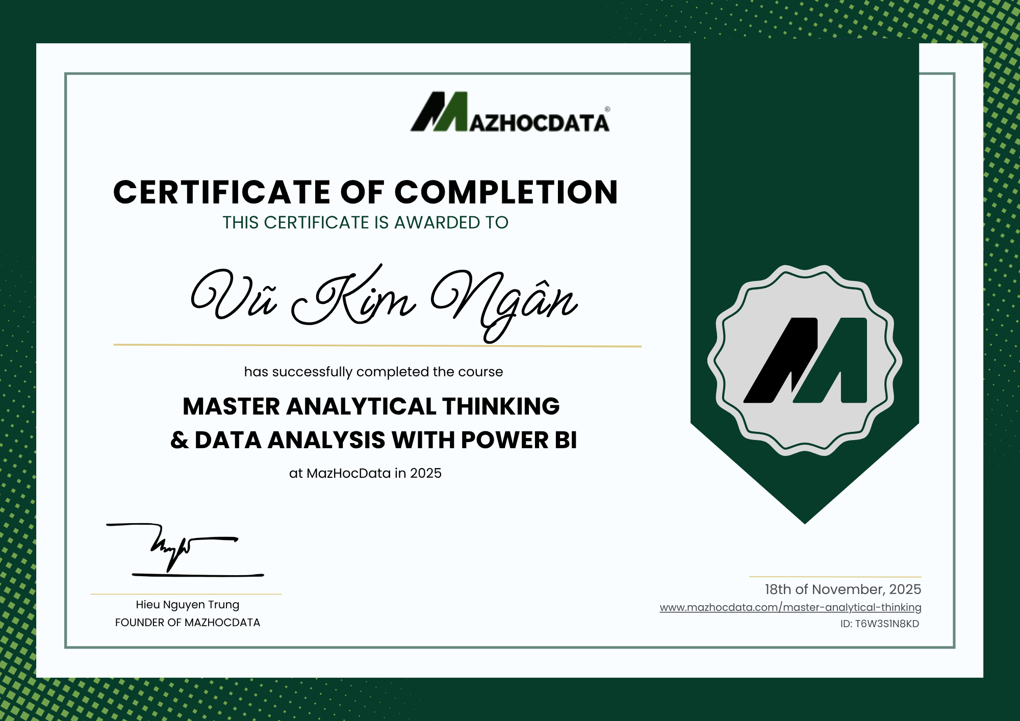 Khóa học "Master Analytical Thinking & Data Analysis with Power BI" tại MazHocData mang đến tư duy phân tích và kỹ năng Power BI thực chiến, sẵn sàng ứng dụng vào doanh nghiệp thực tế.